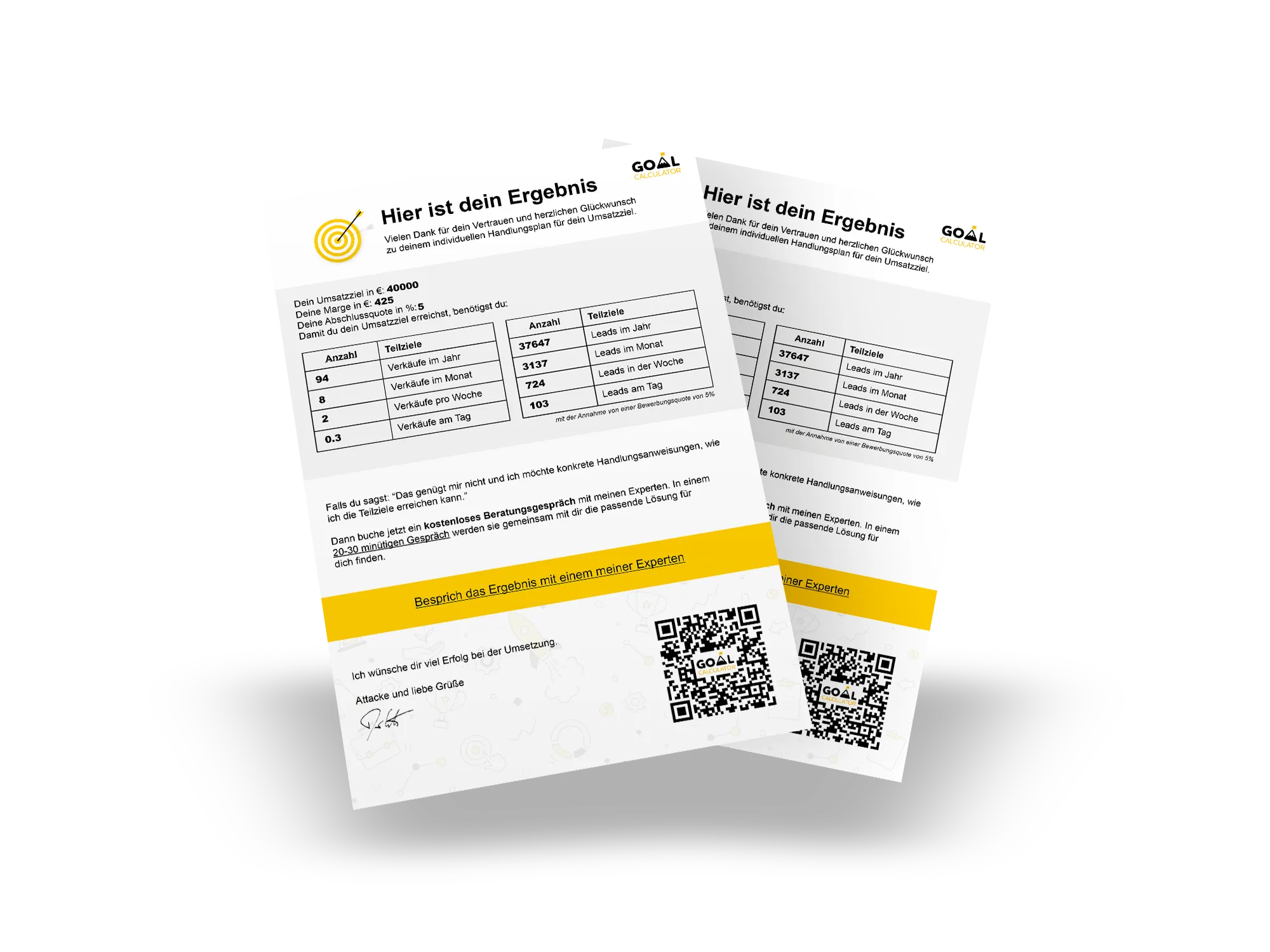 Nutze jetzt den erwiesenen Goal Calculator und definiere zahlenbasierte Schritte zu deinen Umsatzzielen